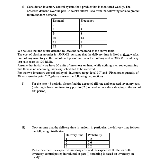 Solved 5 Consider An Inventory Control System For A Product Chegg Com
